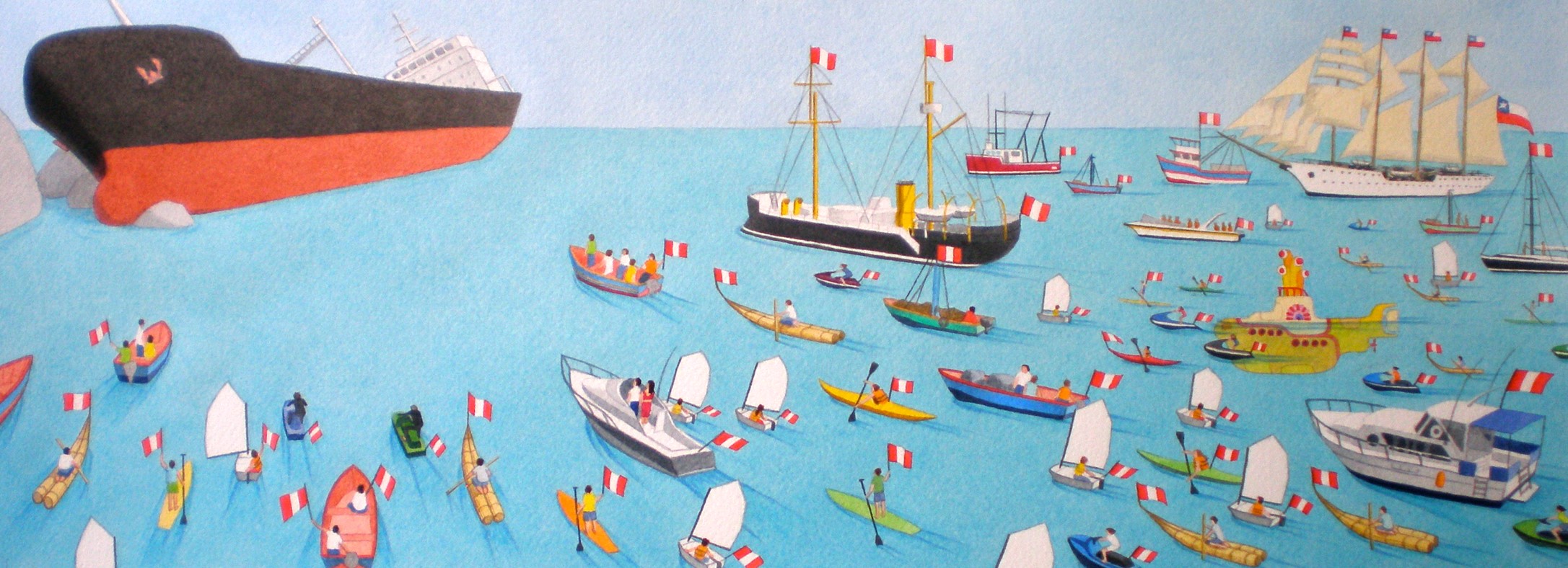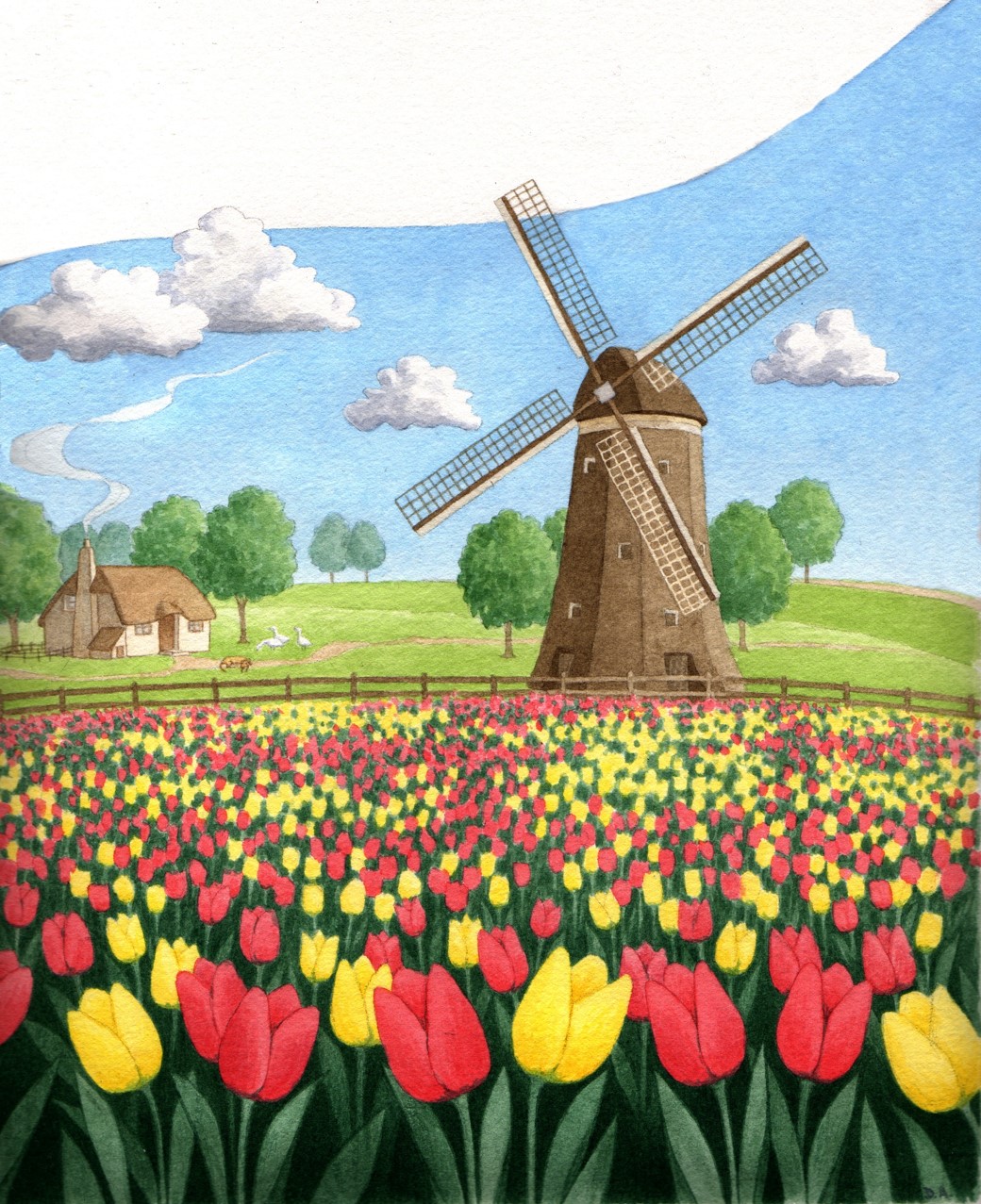Principalmente usa acrílico aguado sobre papel acuarela y luego lo digitaliza.